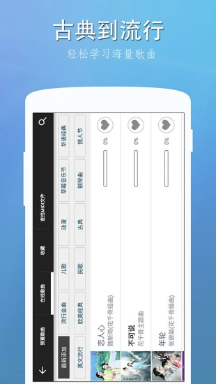 2、为方便用户提升钢琴技能,提供了多种练习方法及不同难度水平。