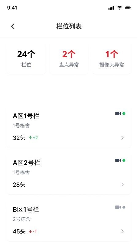 数据信息可自动汇总与统计,无需人工计算,便能知晓牛只总数、栏位总量以及盘点等数据。