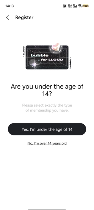 打开你的lloud bubble,在登录界面点击下方的注册功能。