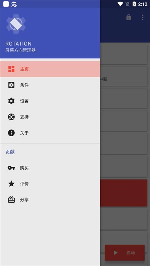 1. 开启rotation屏幕方向管理器这款app,读完使用说明后,进入主页面并点击如图所示的左上角位置。