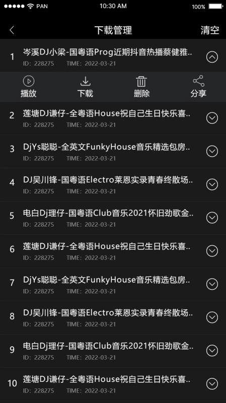 查看最近音乐播放记录方便,进行记录删除分享快捷;