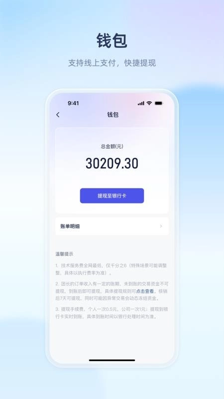 用户可以快捷提现自己的钱包收入,让你极速提现,便捷保障资金的安全。