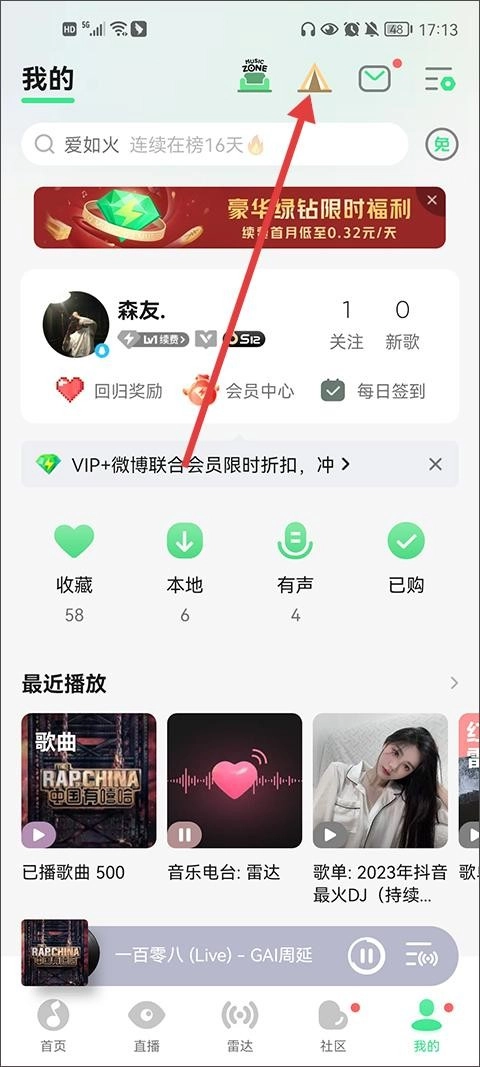 1、第一步,打开软件并进入“我的”页面。在这个页面的右上角,有一个设计精美、辨识度极高的小帐篷图标。只需轻轻点击该图标,就能开启一段与宠物相关的奇妙旅程。