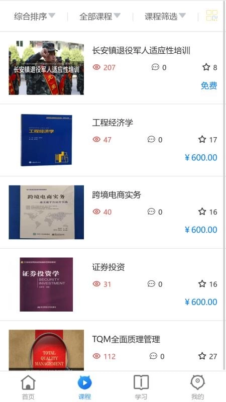 可依据排序、课程类型等条件,筛选出想要学习的课程,这不仅方便找到合适课程,还能节省找课时间。