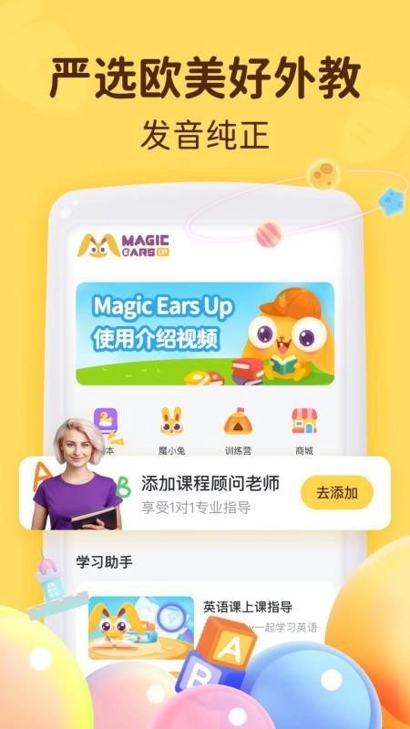 MagicEarsUp手机版,是一款集英语知识教育与双语课堂教学功能于一身的应用软件。它拥有科学的英语知识教学模式,能全方位满足用户的英语课程学习需求,无论是哪个年龄段的孩子,学习英语知识都能轻松搞定。此外,丰富的学习资料,无论是复习、强化记忆还是加深预习,都能满足,同学们日后在线学习各类英语知识会极为便利。 不仅如此,MagicEarsUp免费版APP还提供高质量的课后知识辅导,各种英语绘本阅读和语音表达学习内容应有尽有。对这款软件感兴趣的小伙伴可别错过,快来本站下载体验吧!