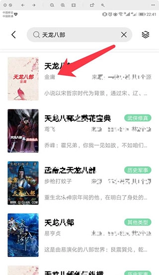 4、于搜索框内,输入欲阅读的书籍名称进行搜索,随后点击搜索结果里的内容。