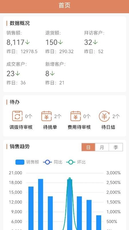 通过对门店商品销售数据进行可视化图表的分析统计,用户能够直观地知晓门店商品销售趋势的变化情况。