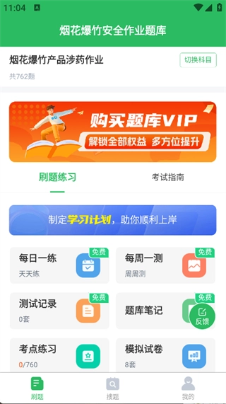 2. 在首页即可看到各类刷题练习,和考试指南;