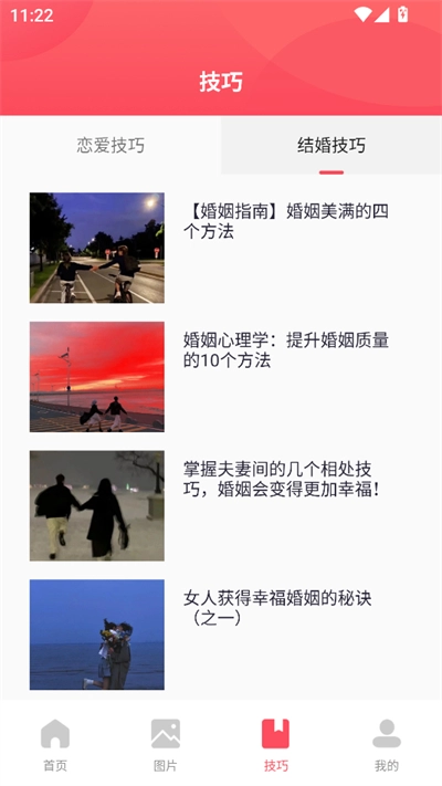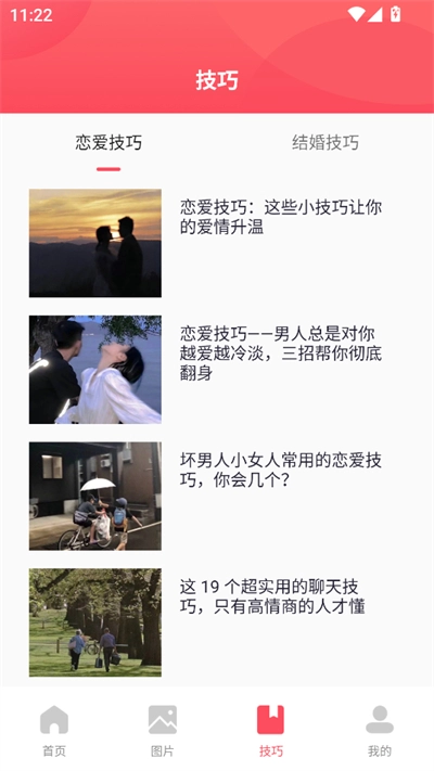 技巧页面包含详细恋爱技巧,可深入学习;