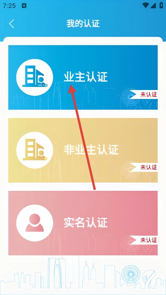 3、认证页点【业主认证】,跳转至信息填写表单,准备提交资料。