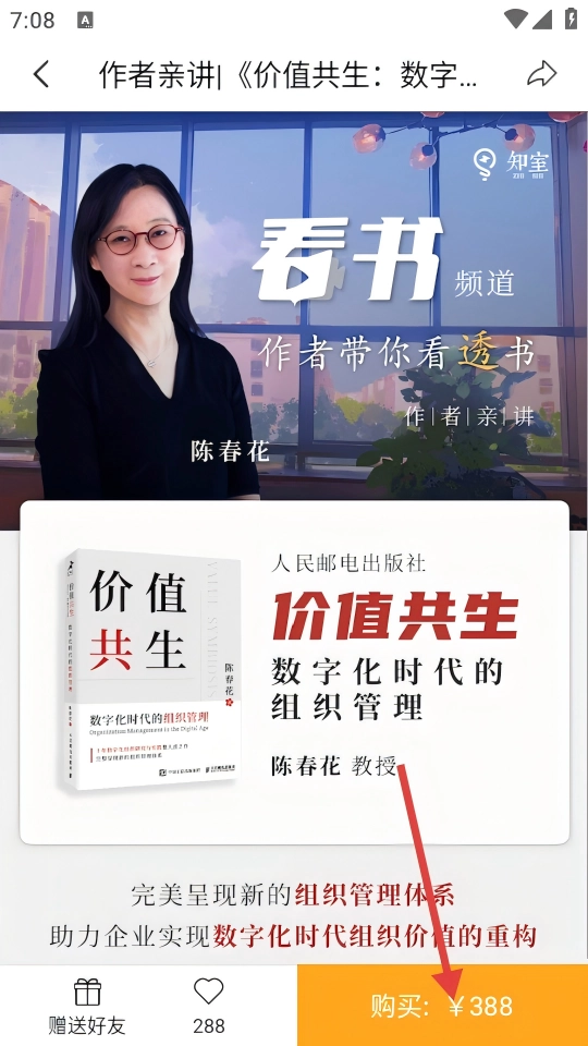2、书店选【价值共生-陈春花著】书籍,进入作者亲讲详情页,查看内容介绍。