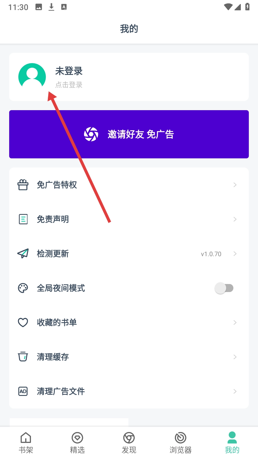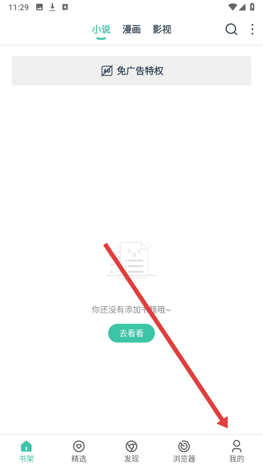 1、书架页点击右下角【我的】,进入个人中心页面。