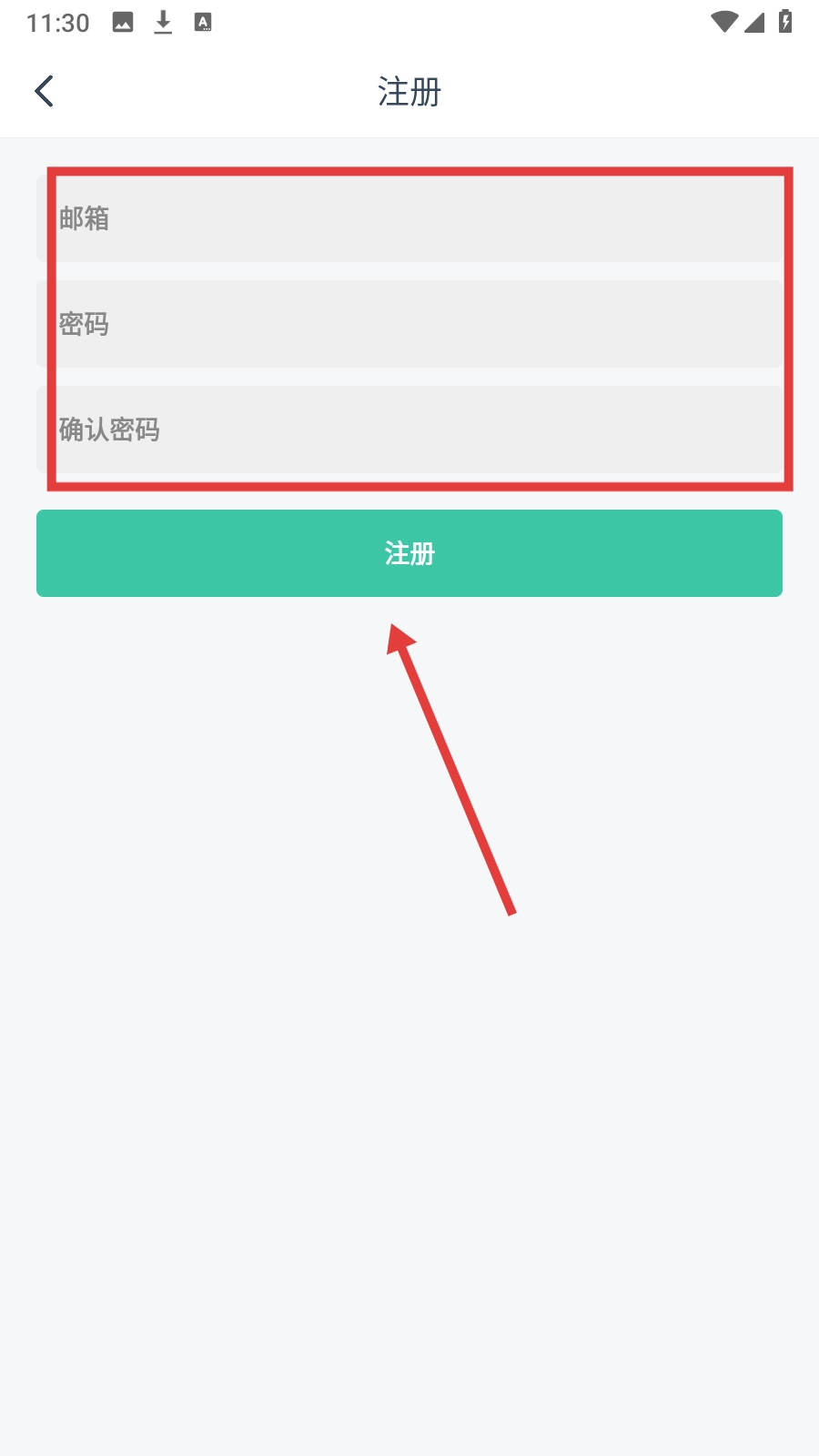 4、填写邮箱密码确认密码后,点【注册】,即可完成注册。