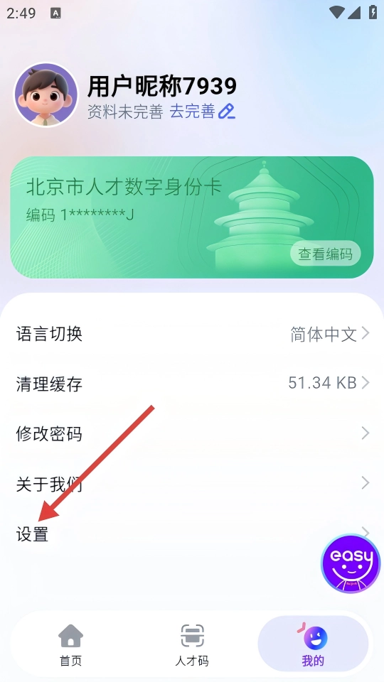 2、在个人中心界面,找到【设置】选项并点击,进入系统设置页面,查看功能入口。
