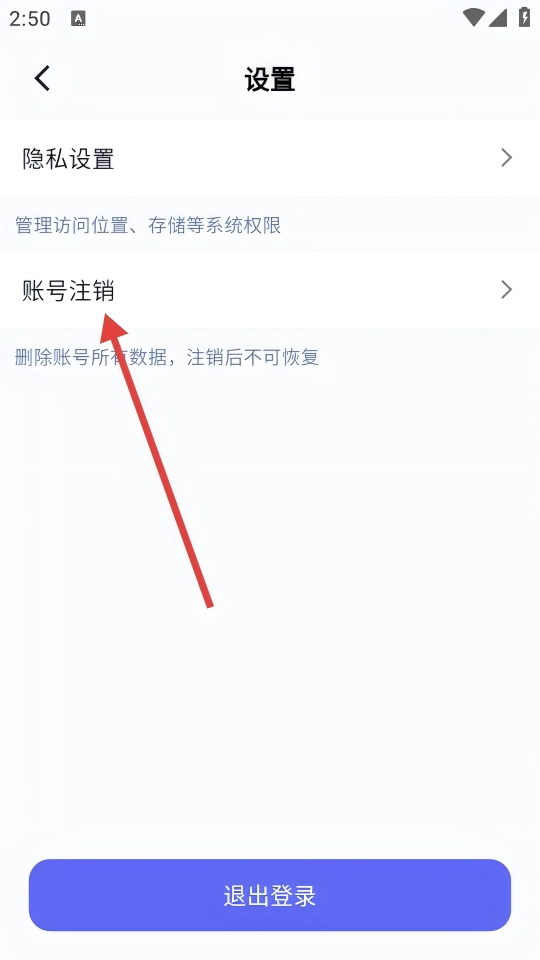 3、设置页选择【账号注销】,了解“注销后数据清空”等规则,确认账号信息后继续。