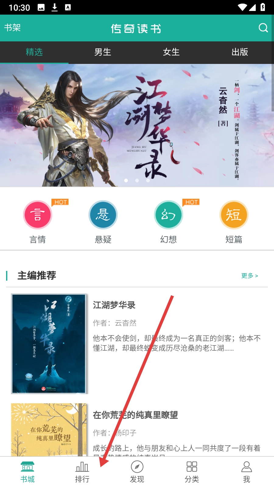 1、书城页点击底部【排行】,进入书籍排行界面。