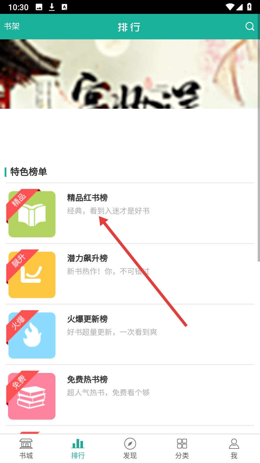 2、排行页点击【精品红书榜】,查看榜单内书籍。
