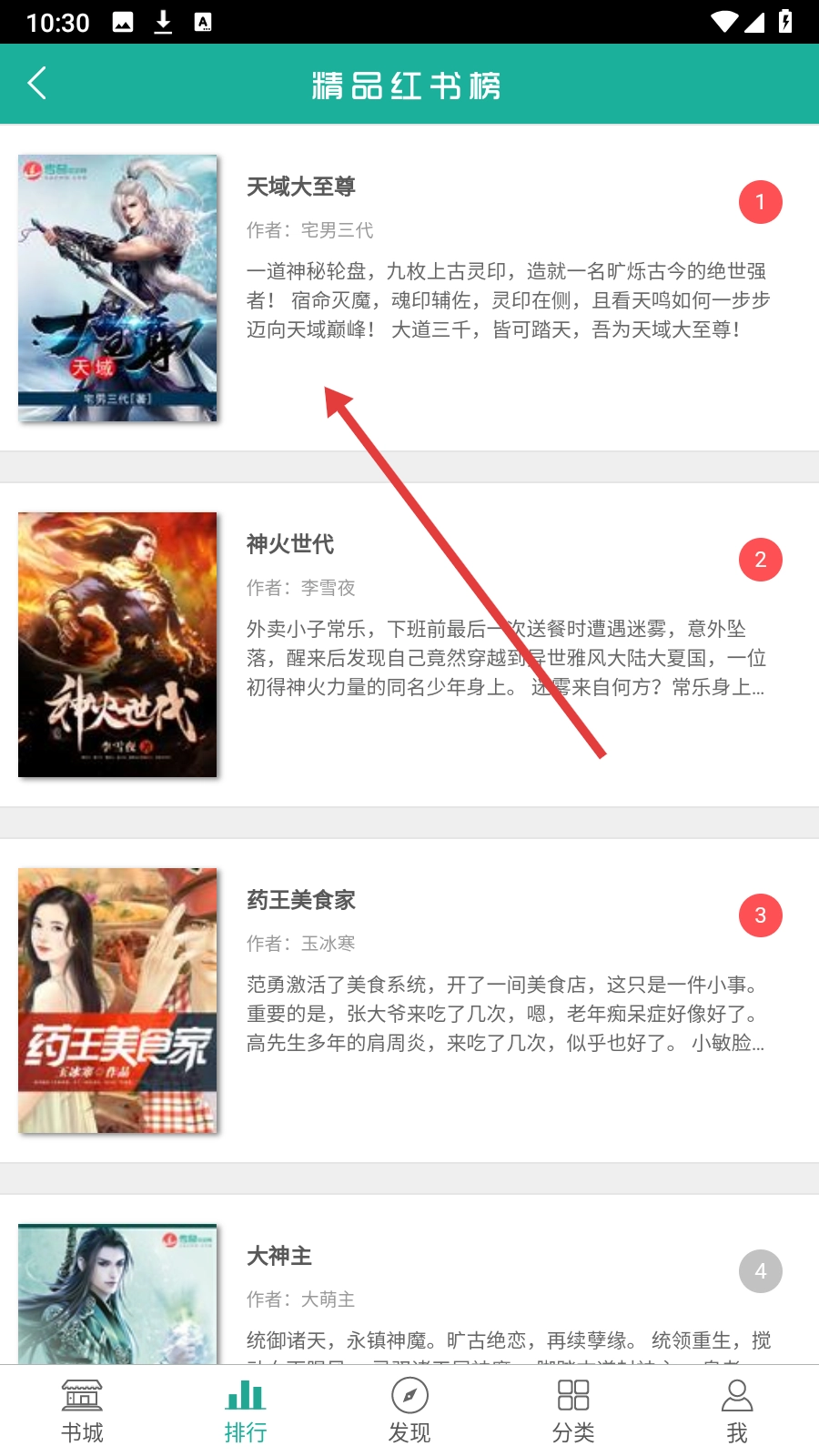 3、精品红书榜选择【喜欢的书籍】,进入书籍详情页。