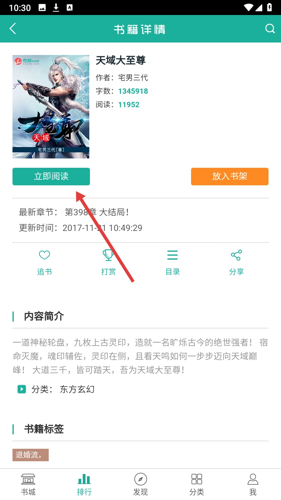 4、书籍详情页点【立即阅读】,即可开始阅读该书籍内容。