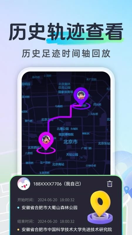 在线可轻松管理所有轨迹,知道好友和自己的出行信息,同时可一键删除;