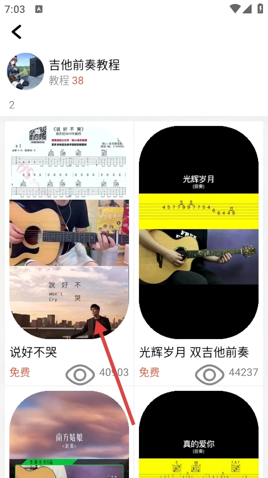 2、在教程列表中,选择【吉他前奏教程】,进入课程详情页,查看课程主题内容。