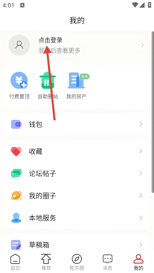 2、在【我的】页面,点击顶部【点击登录】,启动账号登录或注册的操作流程。
