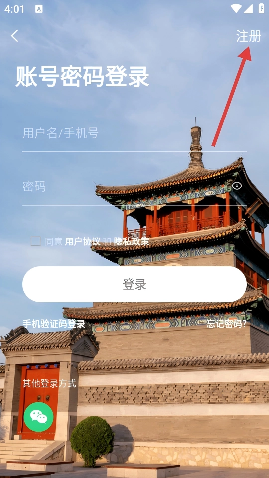 3、登录界面中,点击右上角【注册】,进入新账号注册页面,开启账号创建。