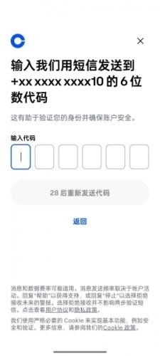 6、输入收到的6位数验证码,即可完成Coinbase账号注册,进而开展数字数字货币产品交易。