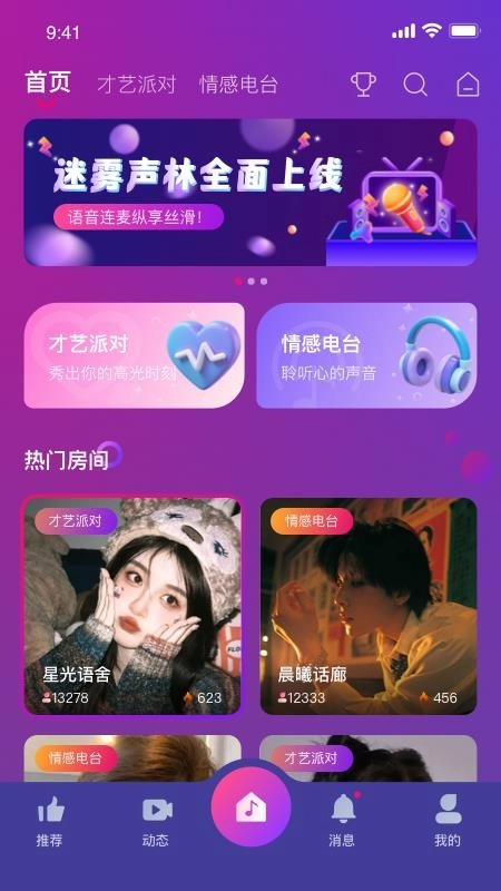 1、在线将迷雾声林APP下载到手机上,点击打开并完成认证即可社交;