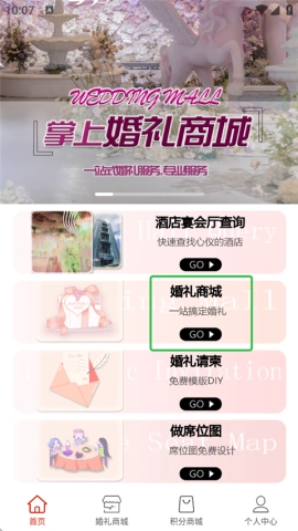 1、打开婚享汇App,首先点击婚礼商城,进入这个富有魅力的世界。