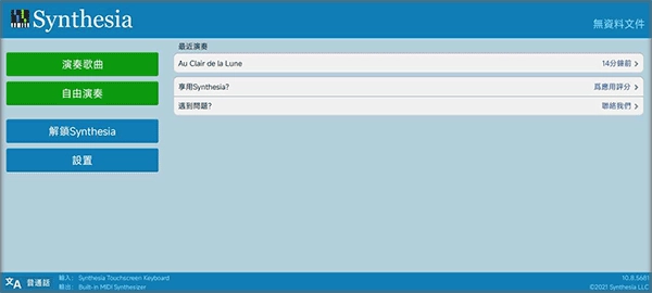 1. 下载并安装Synthesia App,安装完成后打开,进入软件主页面,接着点击“演奏歌曲”。