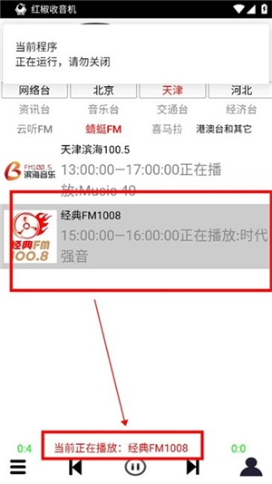 2. 当您点击想要收听的节目,即刻就能看到节目处于正在播放的状态。