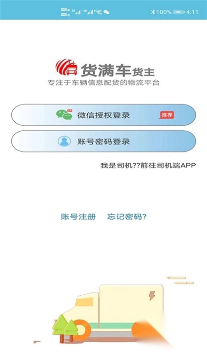 1. 第一步,要在本站完成货满车司机版的下载及安装。安装完成进入主界面后,选择“我是司机”这一选项。
