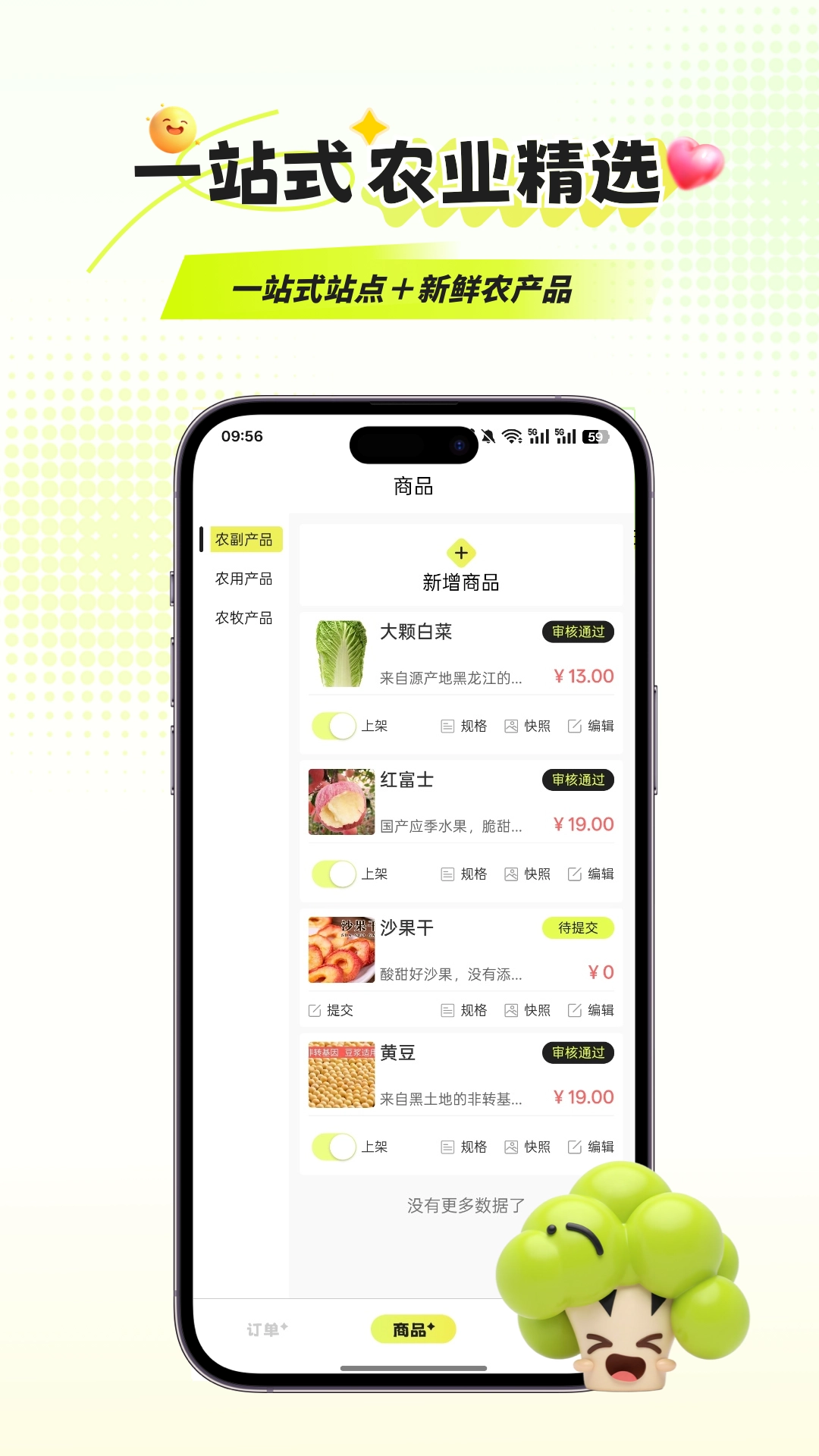 优农宝商家版是一款助力农贸商户随时随地快速进行在线管理的软件。借助它,商户能够高效管理手头货源,体验一站式管理的便捷高效。不仅如此,软件还提供多种免费服务供商户了解,方便他们及时获取不同货源资讯。同时,用户在其中还能知悉各种不同的管理方式。