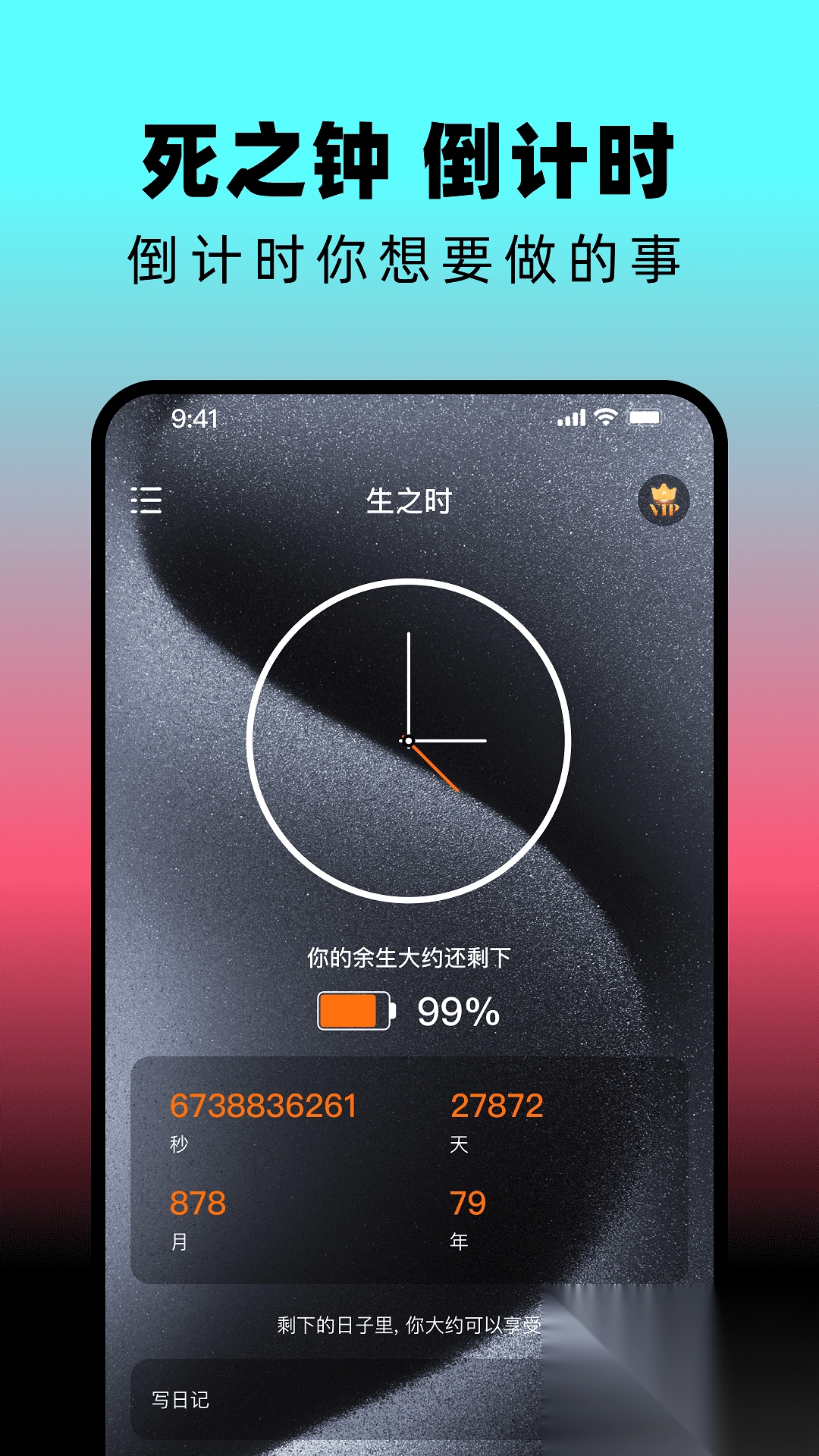 1. 依据用户设定的预期时间,并与当前日期相结合,精准算出剩余生命的天数、小时数、分钟数,乃至精确到秒,让我们珍视当下的每分每秒。