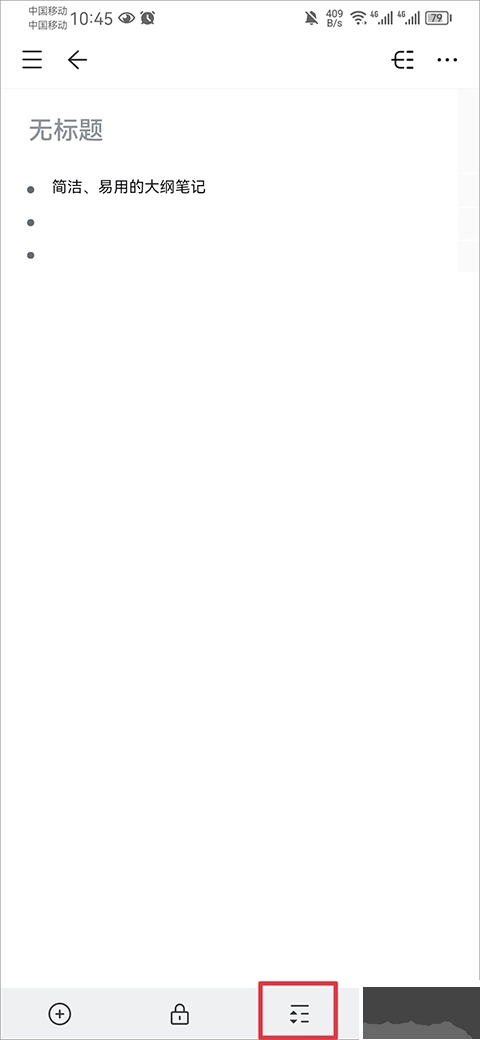 2. 开启一个文档,进入文档编辑页面后,点击下方菜单栏里的三条横线图标。