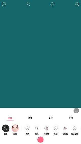 3、当点击右下角的【美颜】按钮后,能够通过对美肤、肤色、对比度、祛皱、祛眼袋等方面进行调整,从而提升拍摄效果。