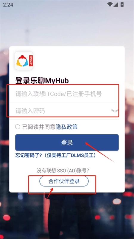 2、输入联想ITCode/已注册手机号及密码,点击“登录”即可,也可选择合作伙伴登录。