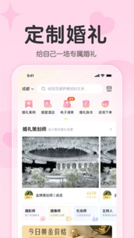 找我婚礼,是成都爱找我科技有限公司精心打造的优质婚礼策划平台。在这里,用户能够定制专属的个性化婚礼。平台拥有极为高级的请柬设计,费用报价透明清晰,为用户带来最省心的使用体验。同时,丰富全面的备婚工具助力用户打造一场独一无二的梦幻婚礼。