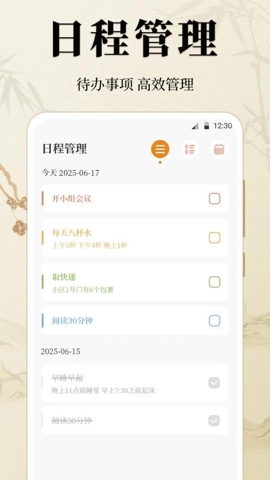 2、具备强大的日程管理功能,用户可以记录每天的待办事项和已完成事项。