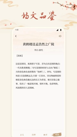 2、每一首诗词,除了呈现原文外,还配有细致全面的翻译与注释,助力用户更透彻地领会诗句蕴含的深刻意义。