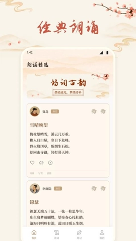 诗歌本朗诵APP,堪称一款功能强劲、资源充裕的古诗词学习利器。无论是初涉古诗词领域的新手,还是资深的诗词爱好者,这款软件都展现出极高的适配性。无论你是谁,它都能为你带来便捷的学习感受以及深刻的文化启发。随着用户持续练习与学习,诗词鉴赏水平将得到显著提高,从而更顺利地融入博大精深的中华文化海洋之中。