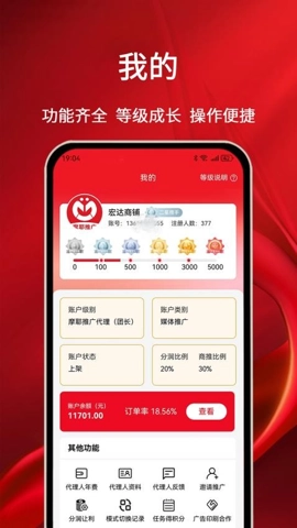 裂变推广利器——摩耶推广,拥有独具匠心的三级分销体系,拓展下线团队还能获得额外管理津贴。