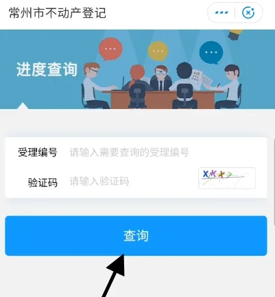5. 最后一步,进入常州市不动产登记页面,在相应位置输入受理编号与验证码,然后点击查询选项,操作即可完成。