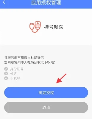 5.进入挂号就医,点击下方的确定授权进入,进行挂号预约