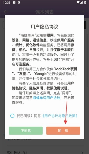3、勾选协议后点击【同意】接受隐私政策