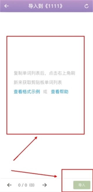3、在导入界面,把自己复制的单词粘贴进去就行。