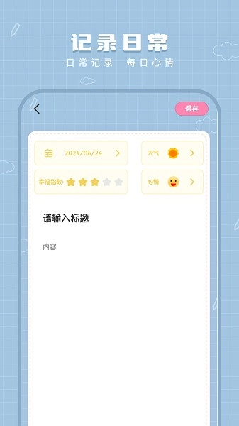 3、支持调整字体样式、插入图片,可标记天气和心情,编辑完内容后点击保存即可存储笔记。