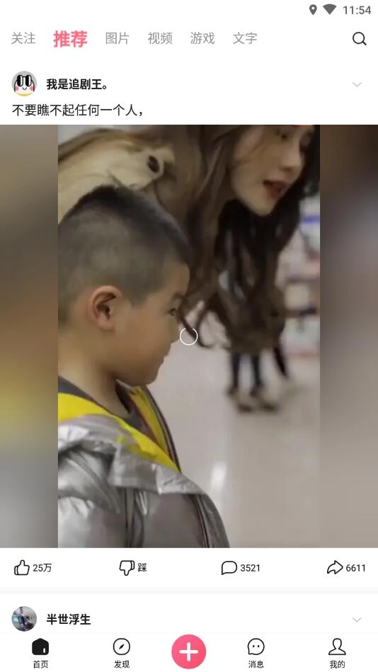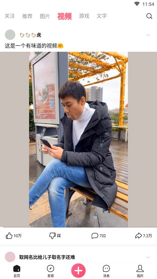 2、首页设有推荐、视频和图文这三个频道,页面右上角的搜索按钮,能够用于搜索热门标签话题,涵盖美食、宠物、电影、热血动漫、恶搞等各类话题。