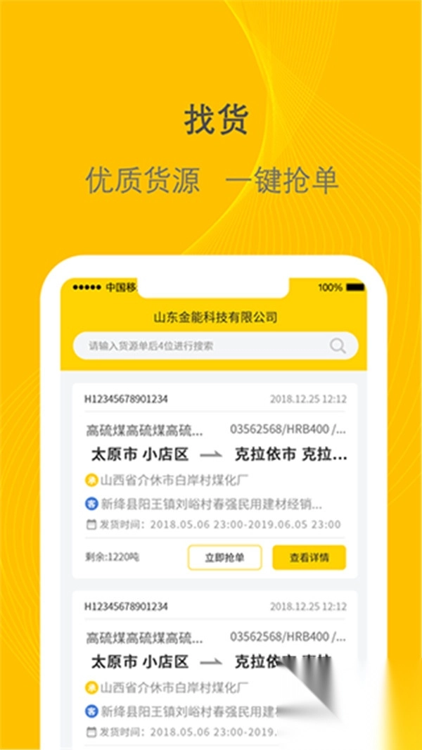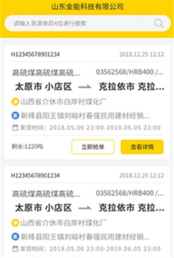 1、用户可以随时查看每笔订单的货源单号、收货公司等信息。